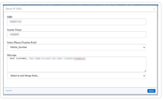 - Select Phone Number Field – Choose Phone field from the selected data extension.