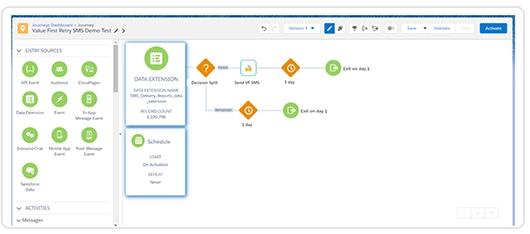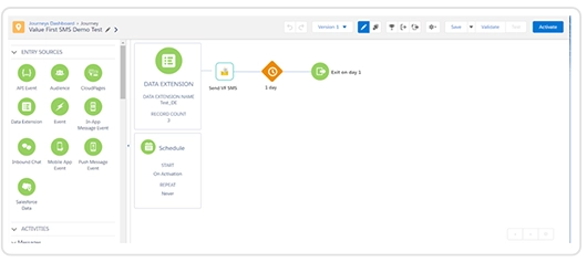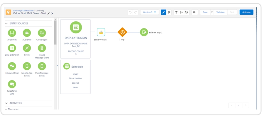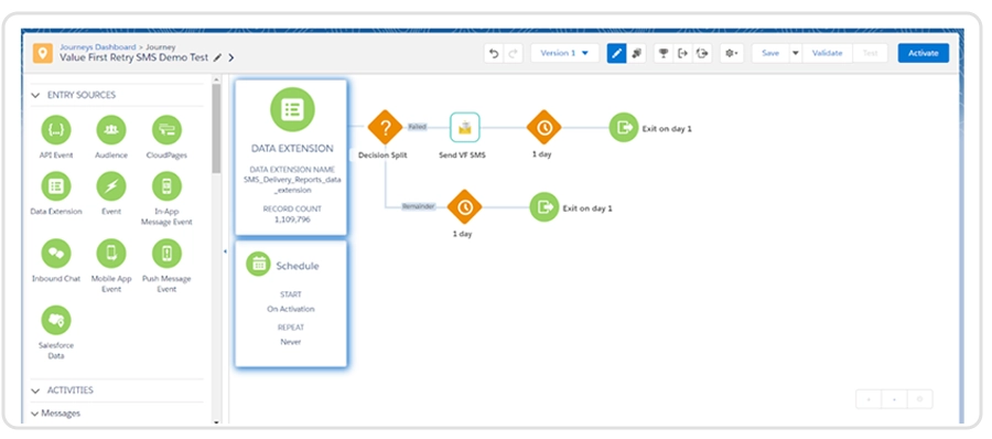 - Drag and Drop Send VF SMS value first SMS activity in the journey.