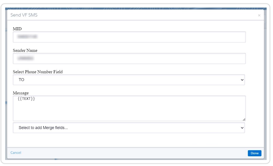 - Message – Enter the Message. If message contains merge field choose merge field from the Add merge fields drop-down.