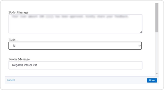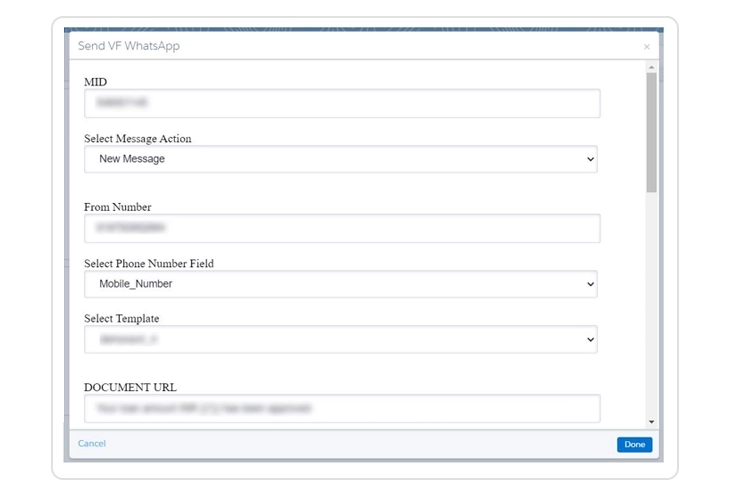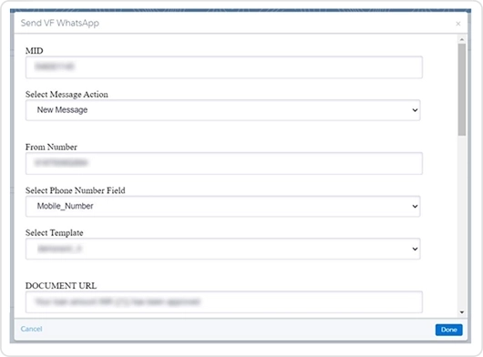 - Select Template – Select WhatsApp Message Template.