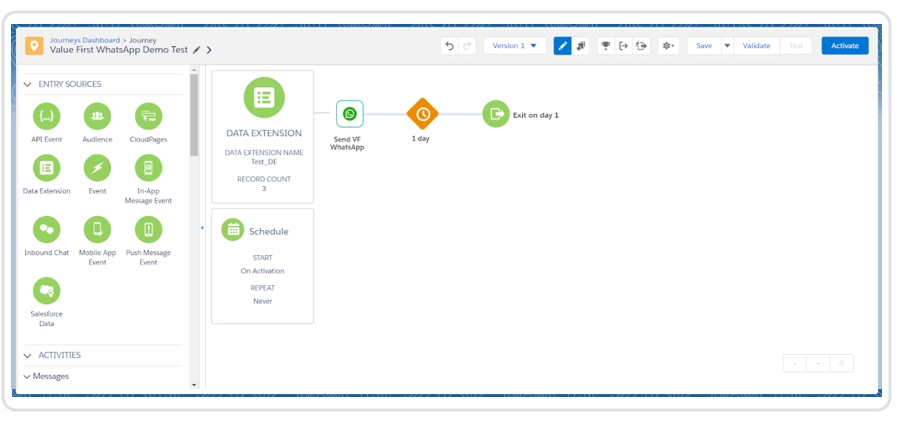 - Drag and Drop Send VF WhatsApp value first WhatsApp activity in the journey.