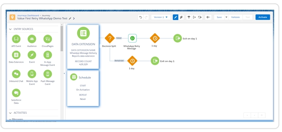 Create a journey using Value First WhatsApp Activity