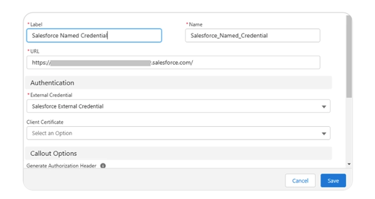 Step 19 –Navigate to the Named Credential and link it with the External Credential created in the above step.