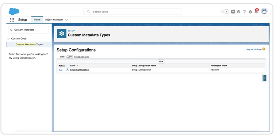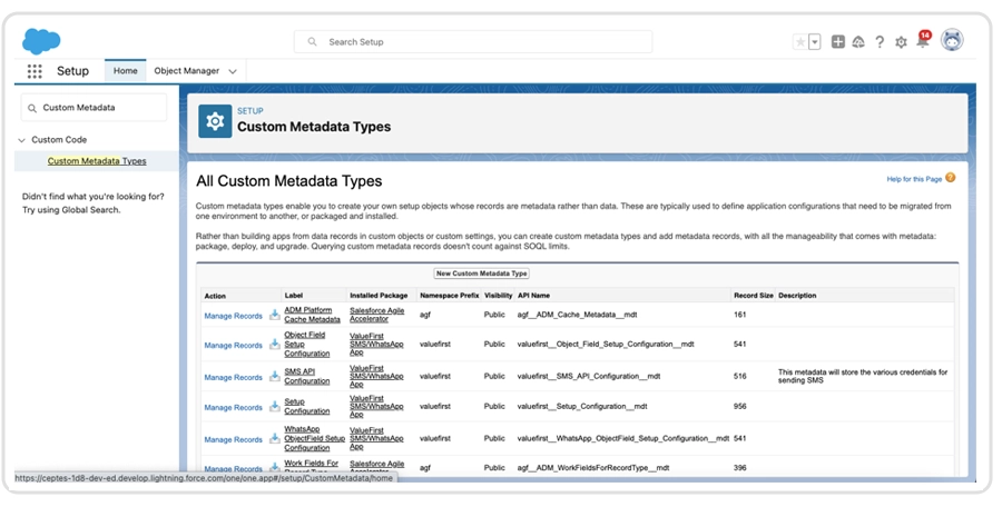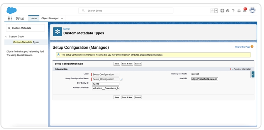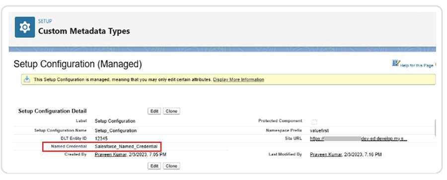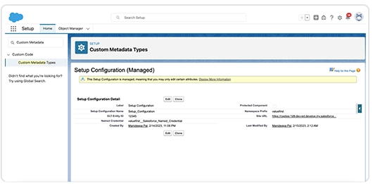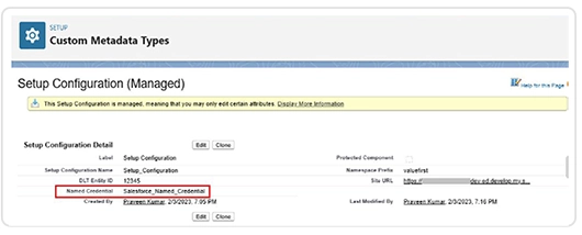 Step 22- Add the named credential name in Setup Configuration custom metadata type under Named Credential field.
