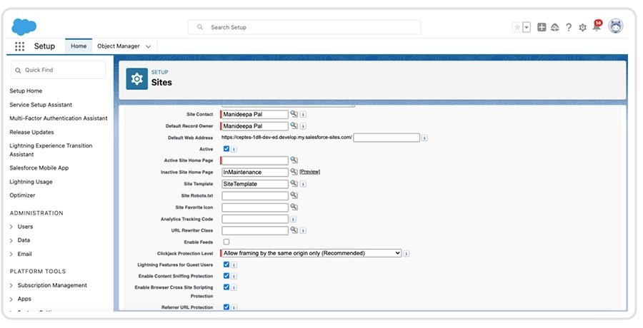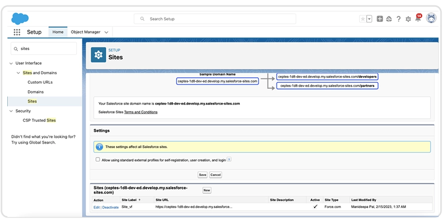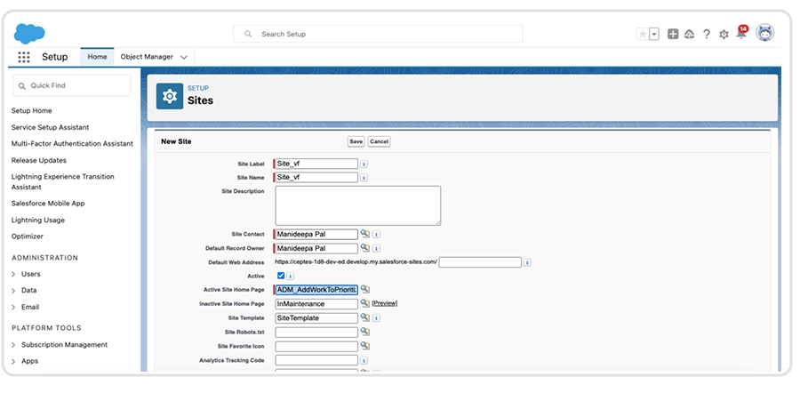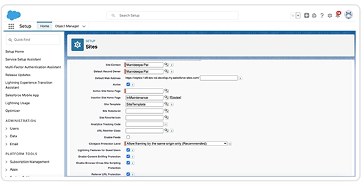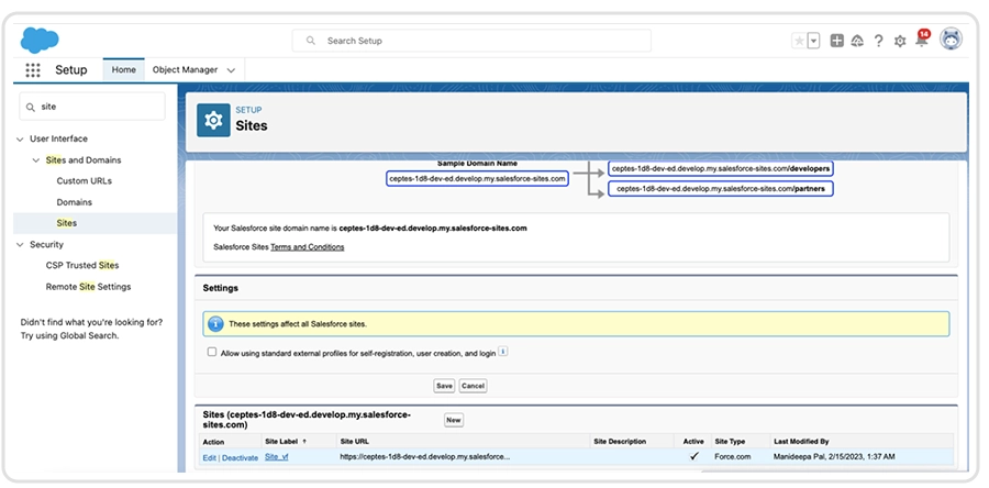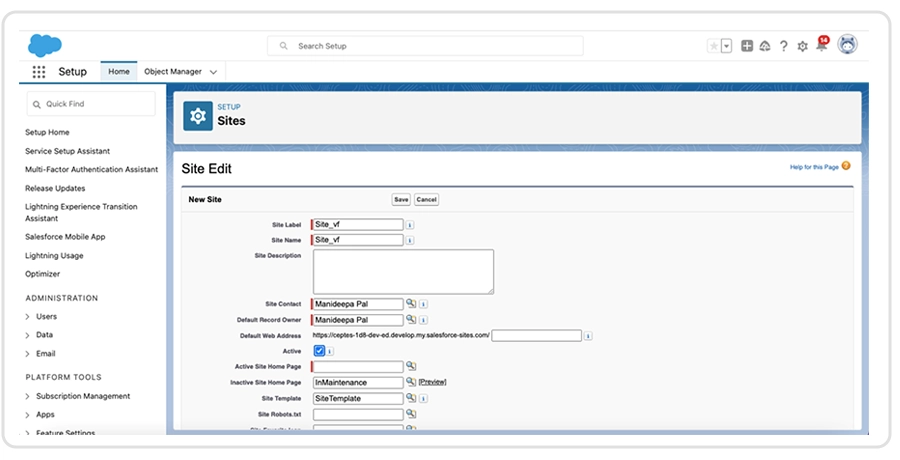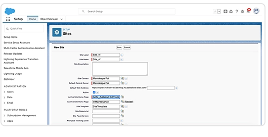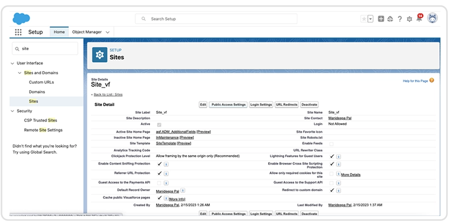 Step 11- Go back to Sites again and click the Site Label eg.Site_vf.
