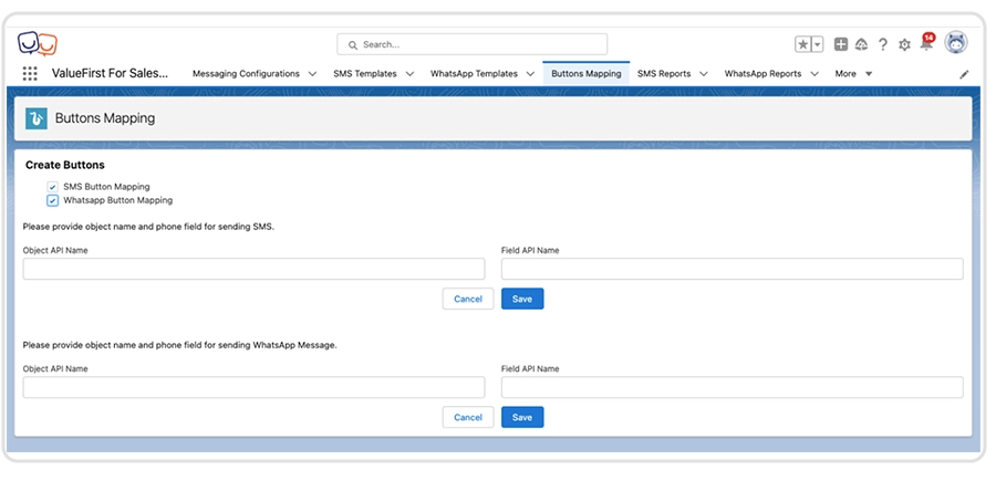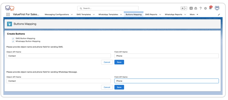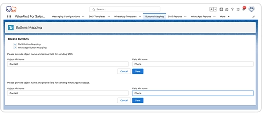 Step 18- Fill in the attributes of both SMS Button Mapping and Whatsapp Button Mapping.