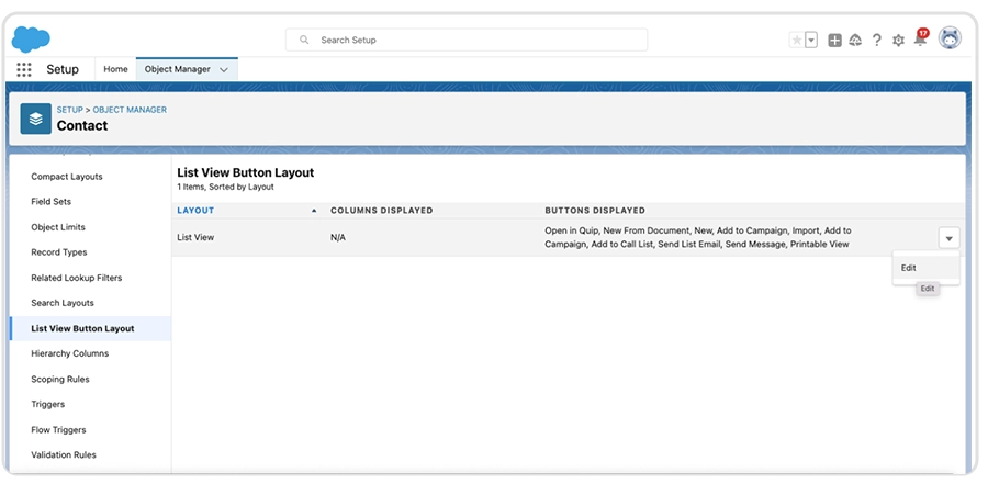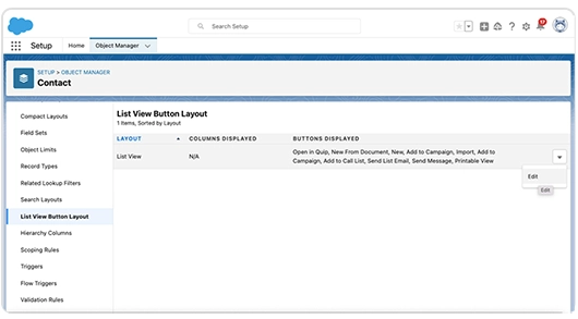 Step 24- Now go to the List View Button Layout and click on Edit.