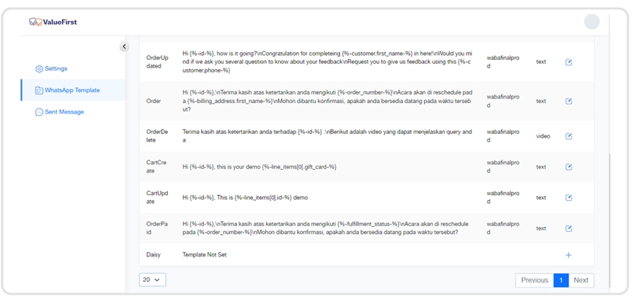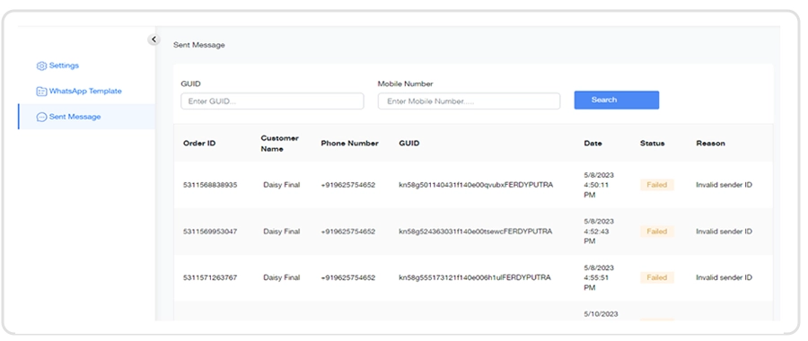 Click on Sent Message, at right to see all sent WhatsApp messages.